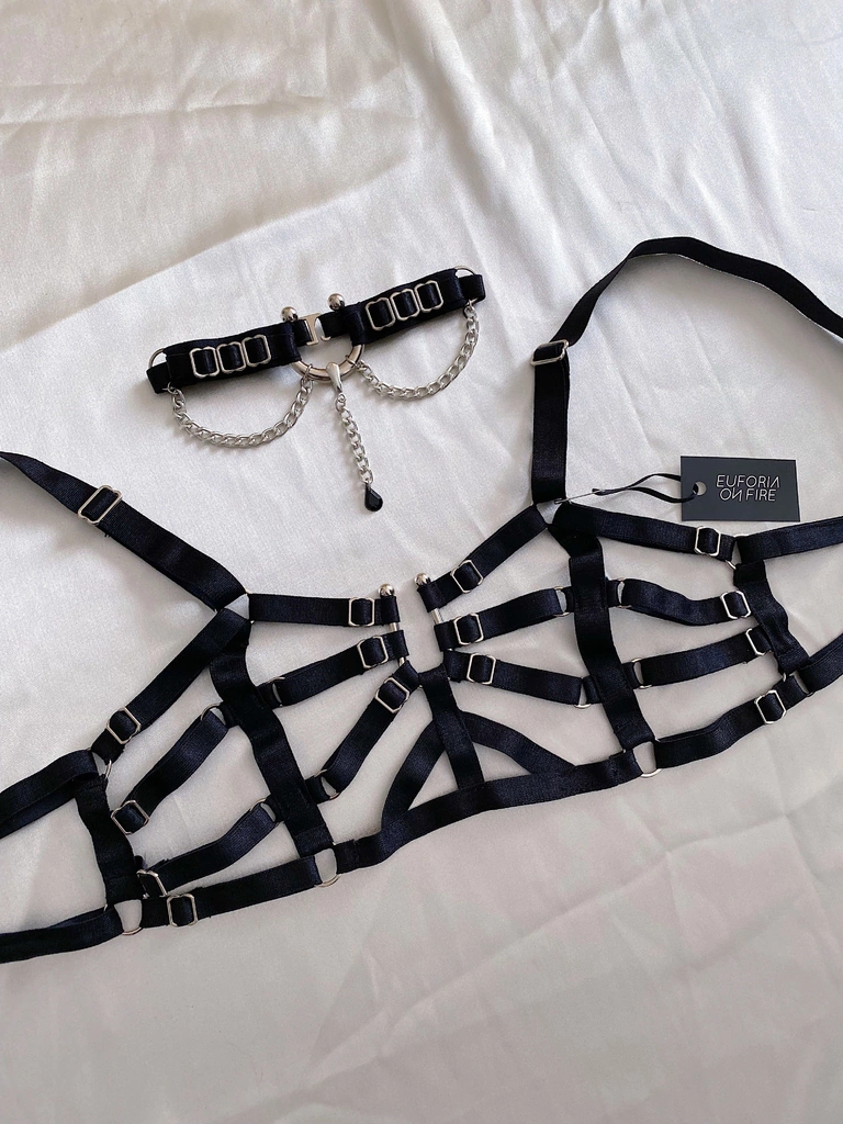 Arnes confeccionado con tiras elasticas regulables, lo que permite que lo adaptes a tu cuerpo.