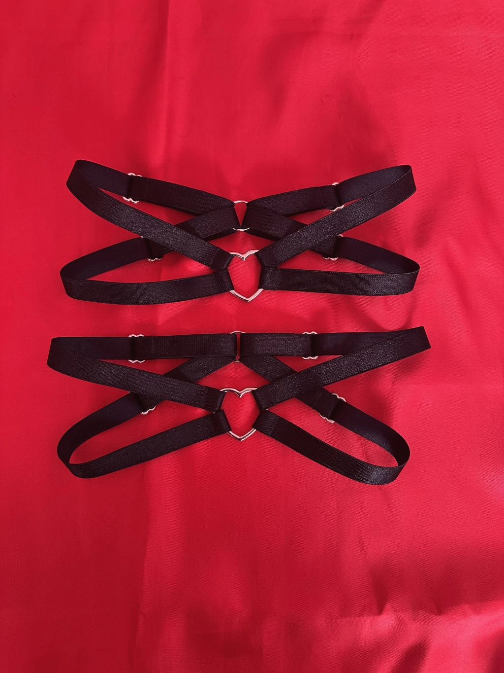 Ligas confeccionadas con elastico regulable y detalle de dije corazon.